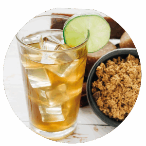 Incorporar en un recipiente la panela granulada, el agua y el zumo de los limones.